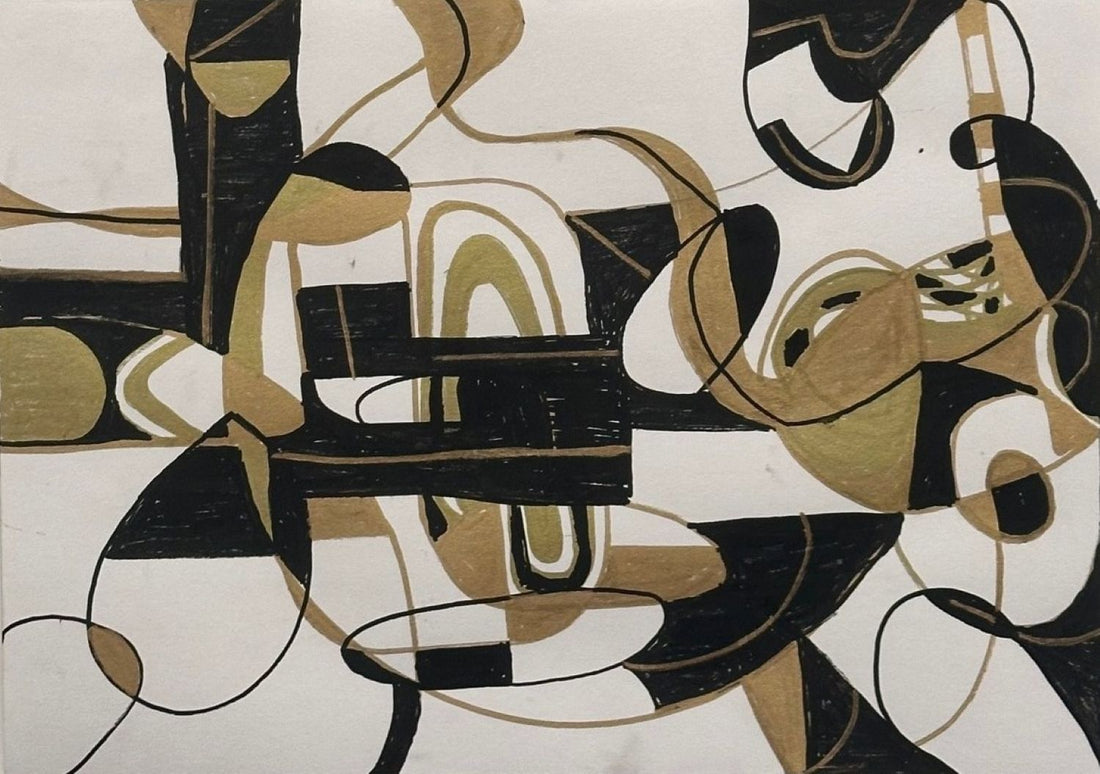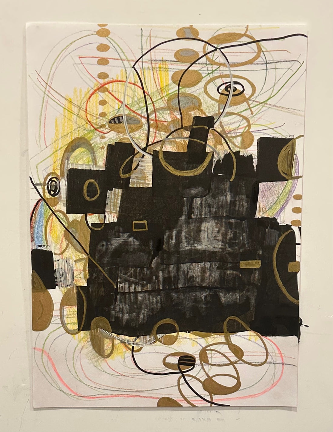 Acrylic, paper, and markers on 80cm x 100cm linen canvas.