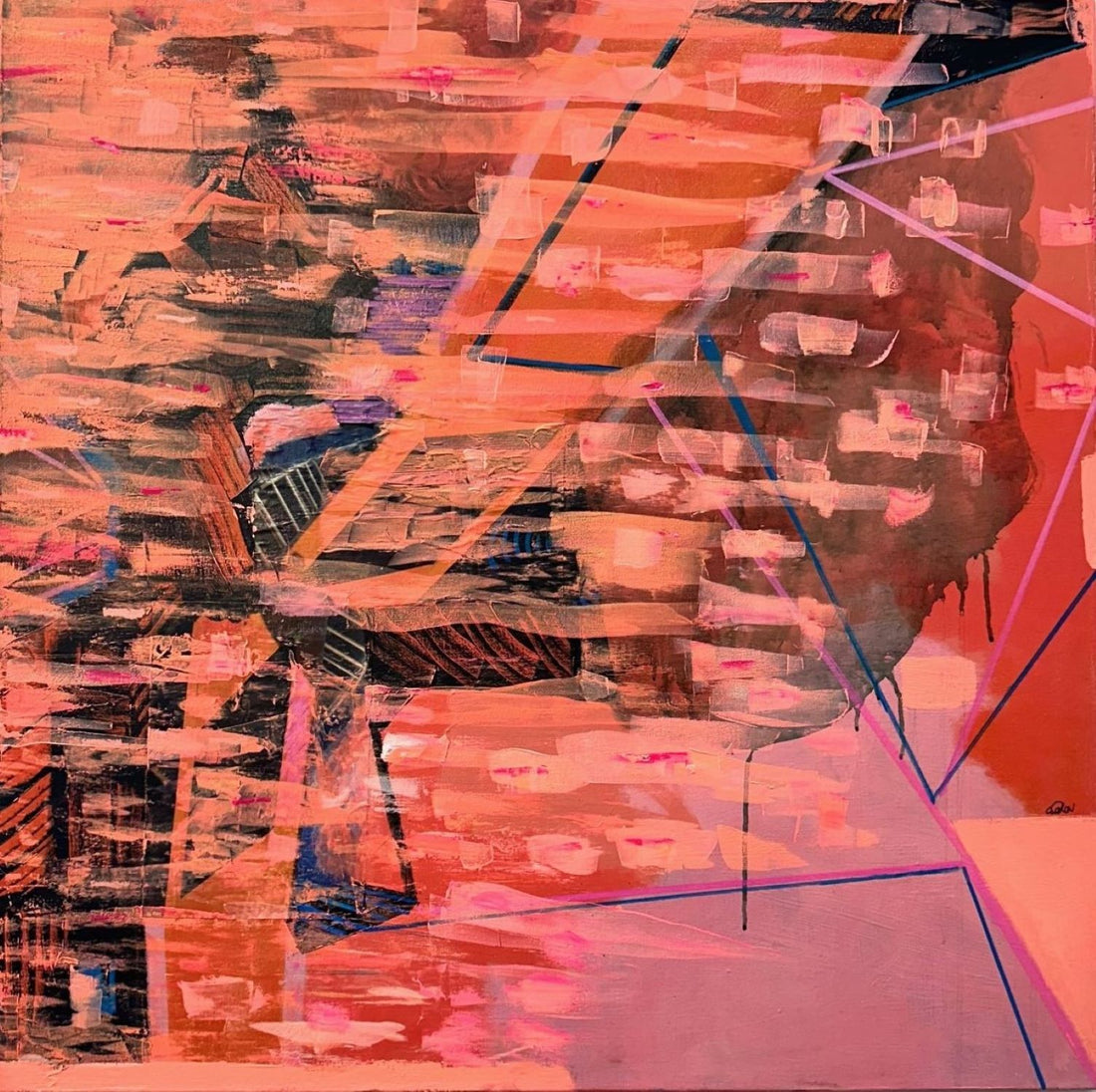 Acrylic and oil pastel on 62cm x 62cm canvas.