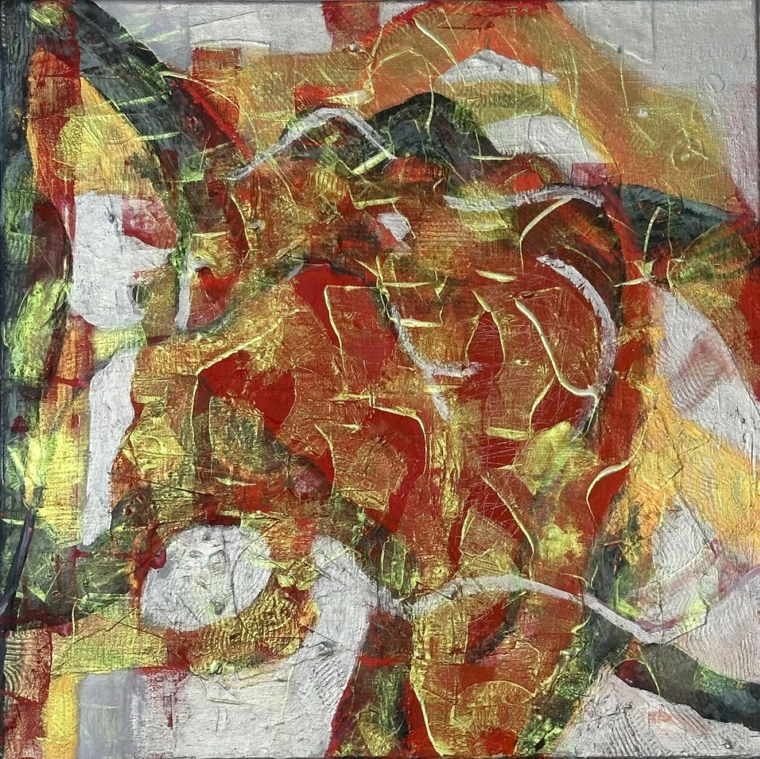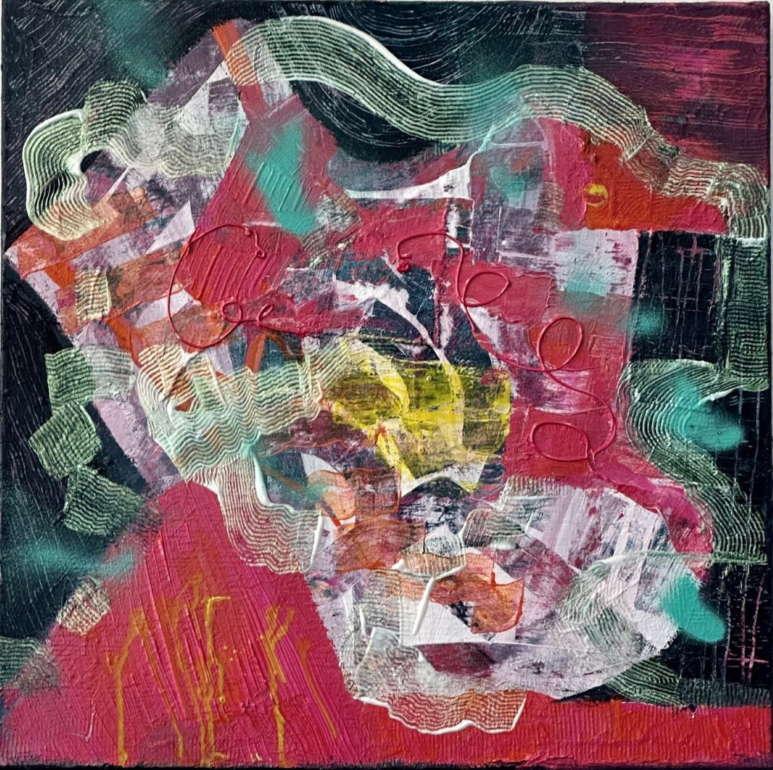 Acrylic, iridescent paint, and Verdigris base on 50cm x 50cm canvas.
