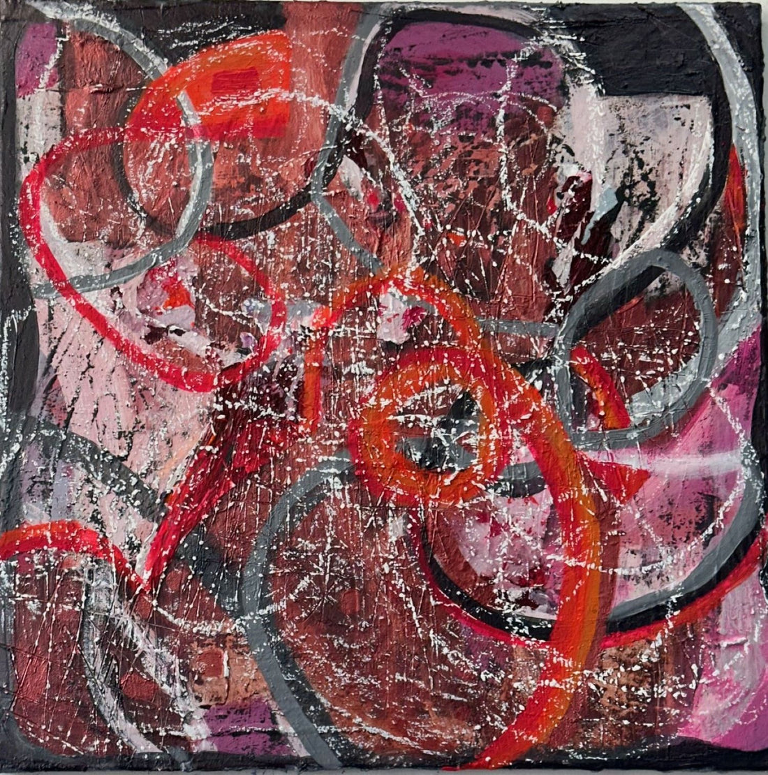 Acrylic and oil pastel on 101 x 101cm canvas.