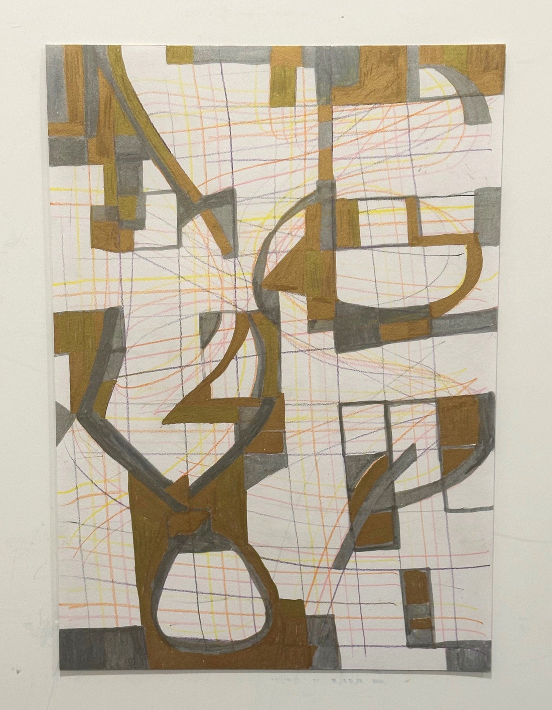 Acrylic, paper, and markers on 101cm x 101cm canvas.