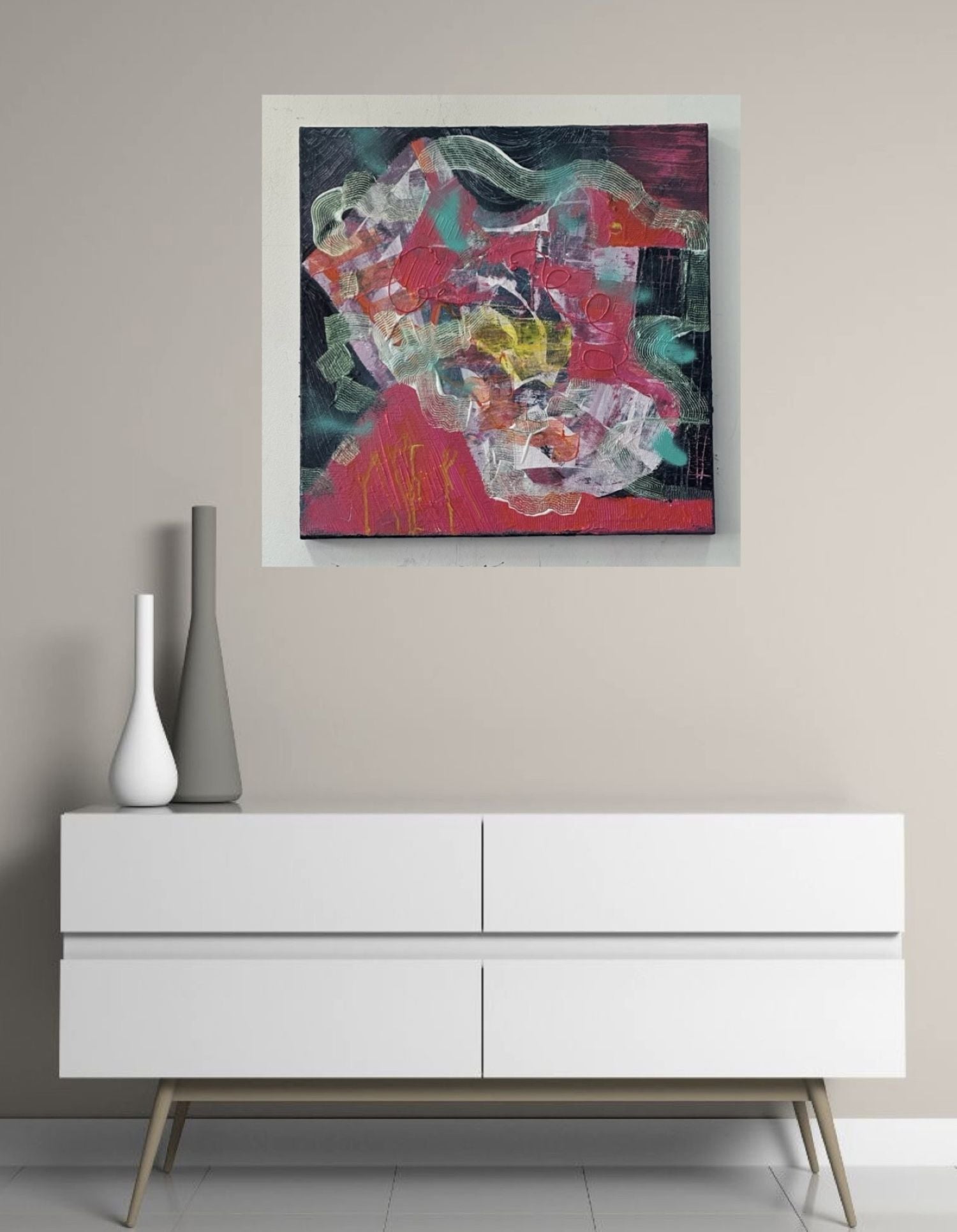 Acrylic and oil pastel on 62cm x 62cm canvas.